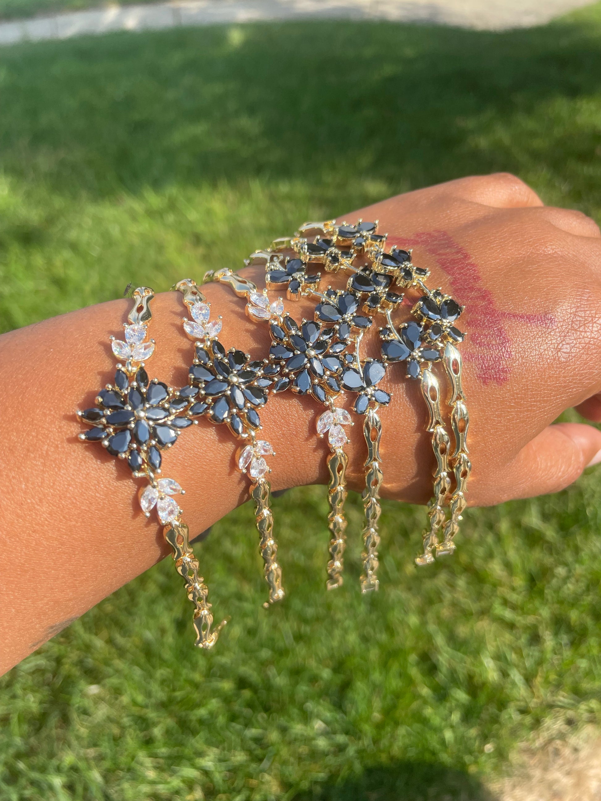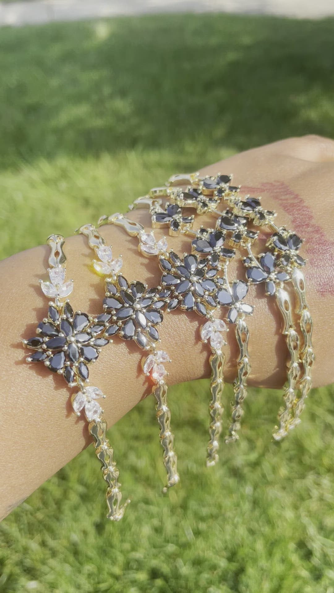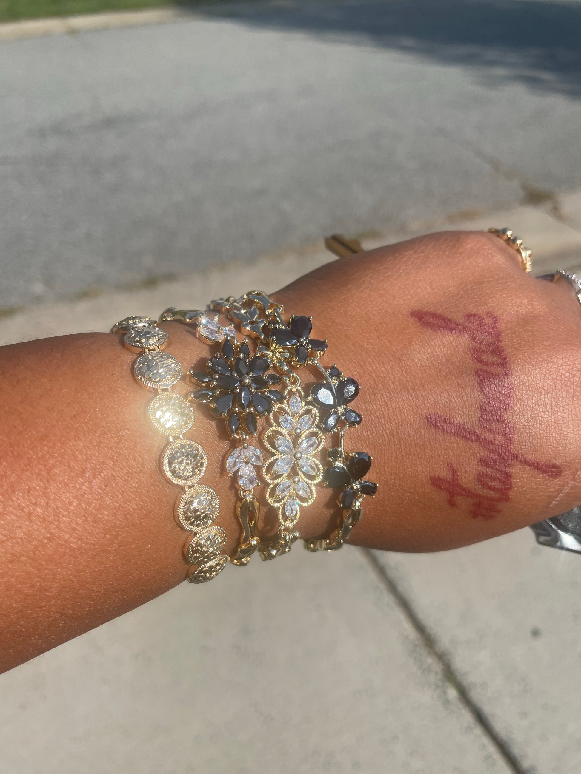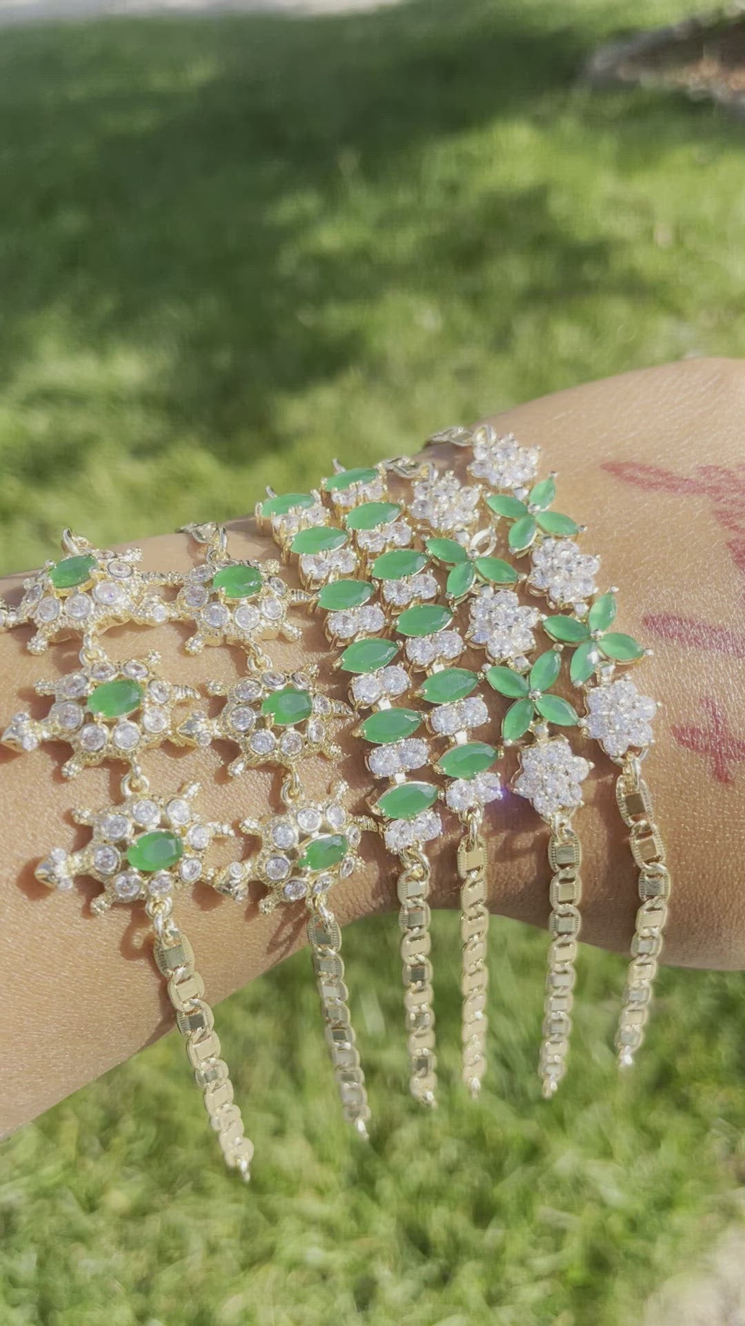 Gold overlay CZ green or black crystal bracelets designed with flowers šø,turtles š¢ and stones