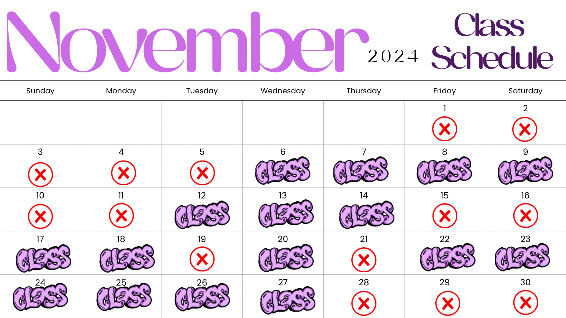 • Classes are offered every calendar month except December calendar is attached each month