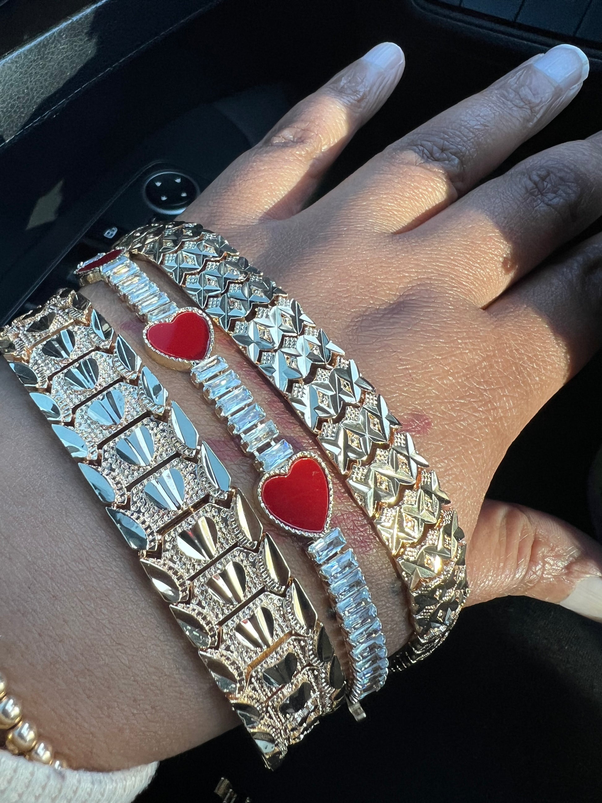 Set of 3 - 1 CZ style and 2 all gold style bracelet