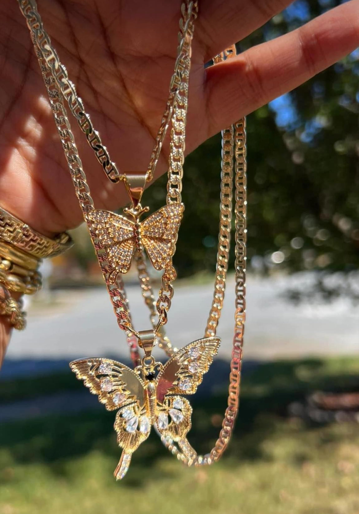 Set of 2 chains with butterfly charms lengths range from 20/22 inchÂ