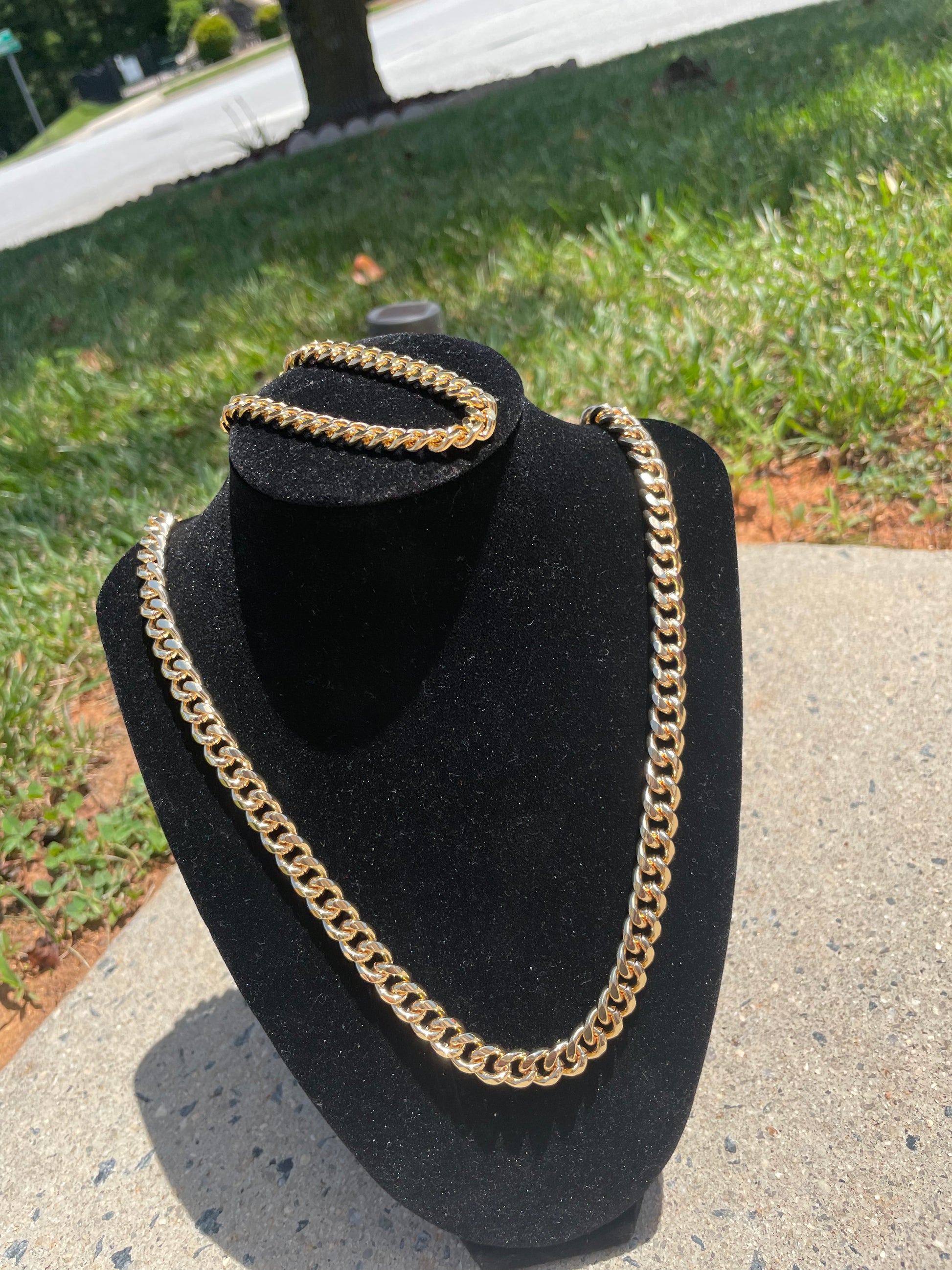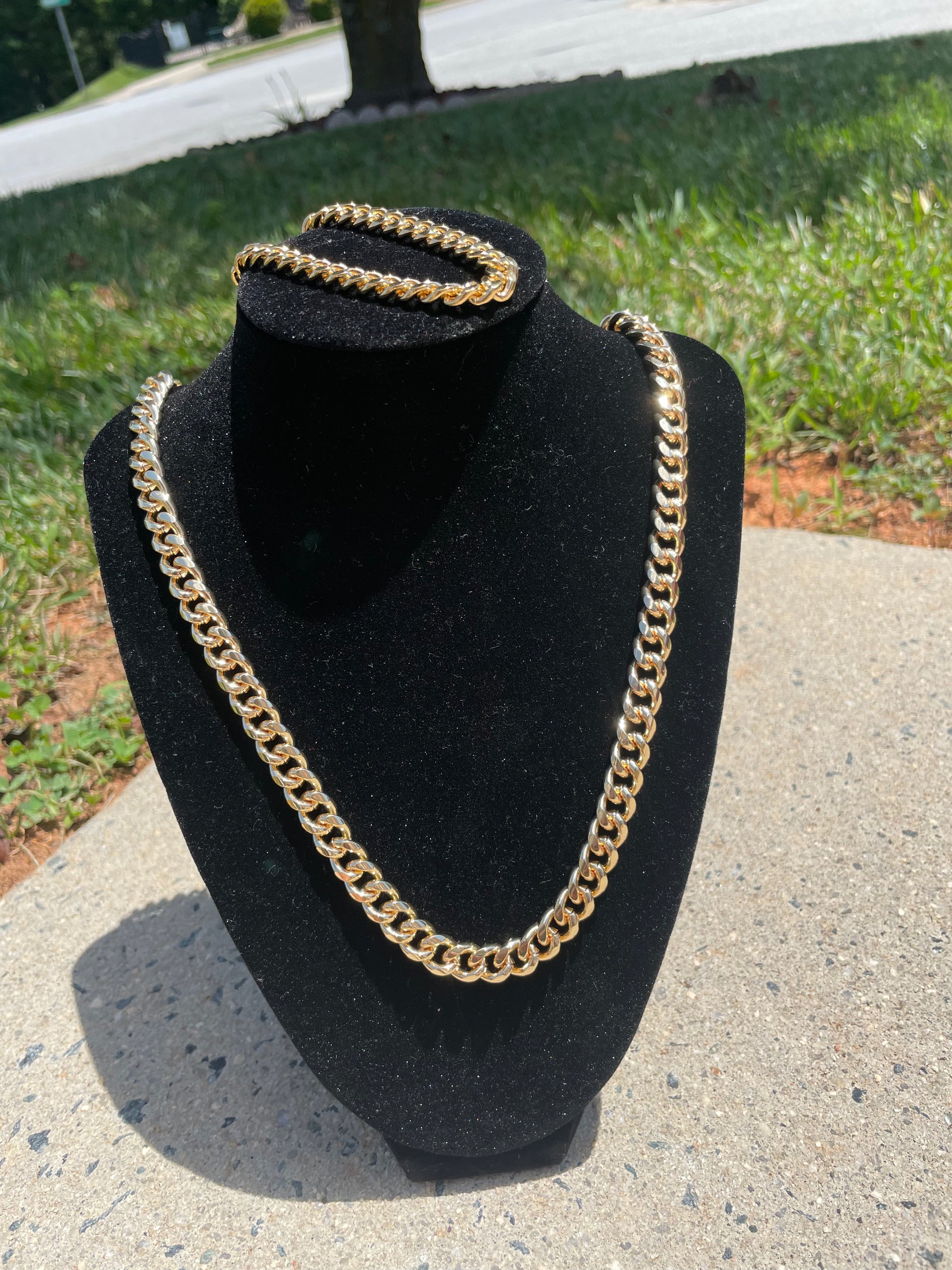 Length on necklace is 22in bracelet is size 8in