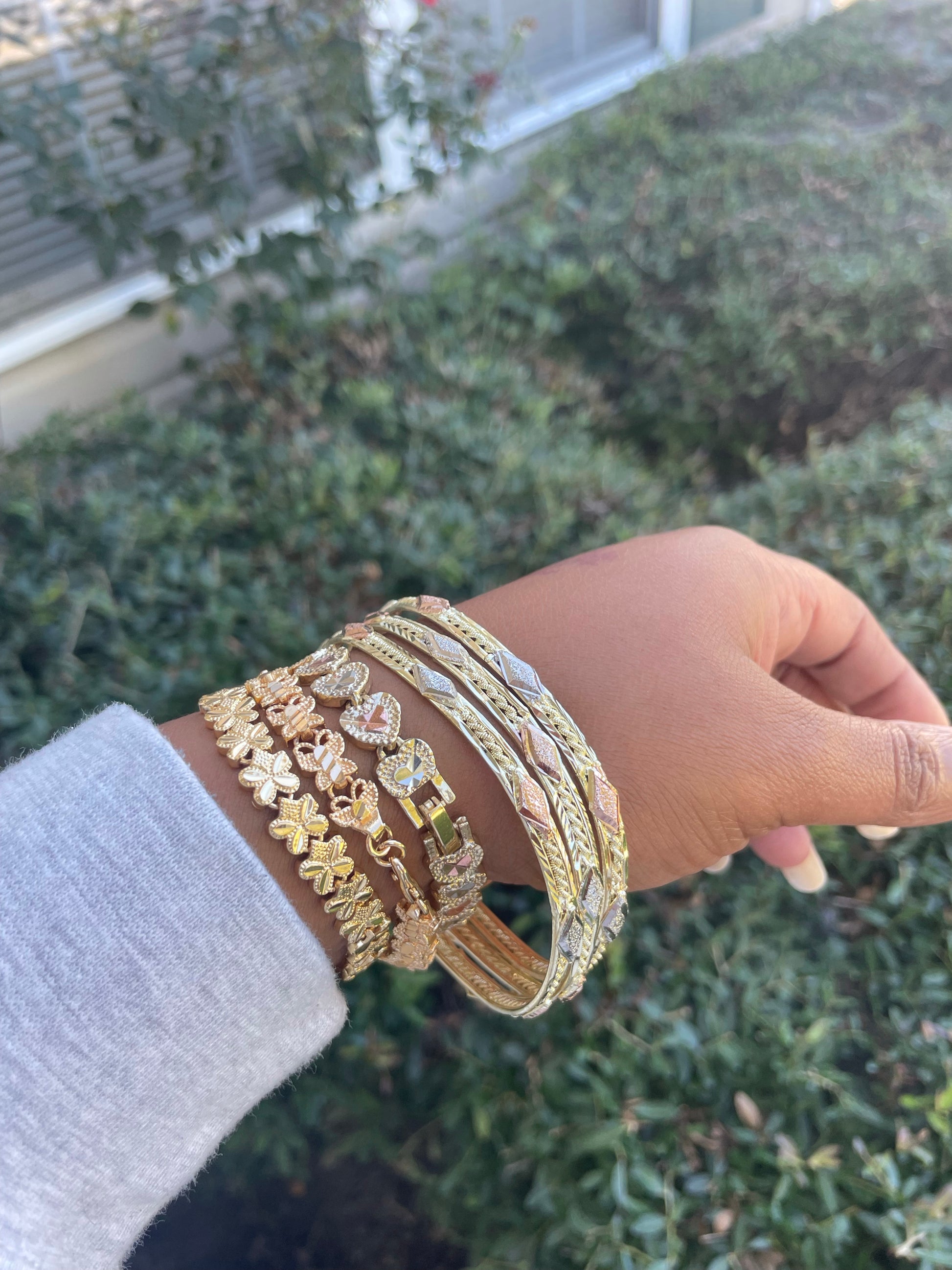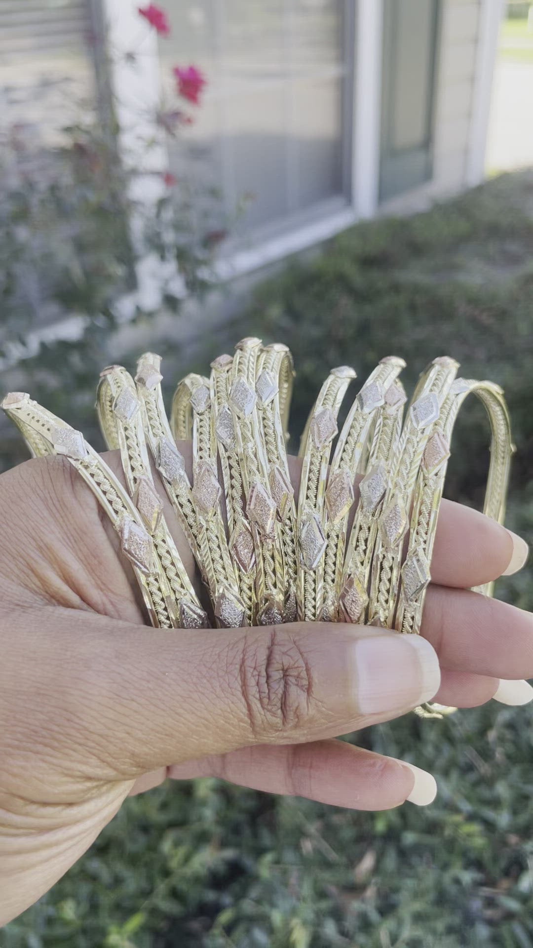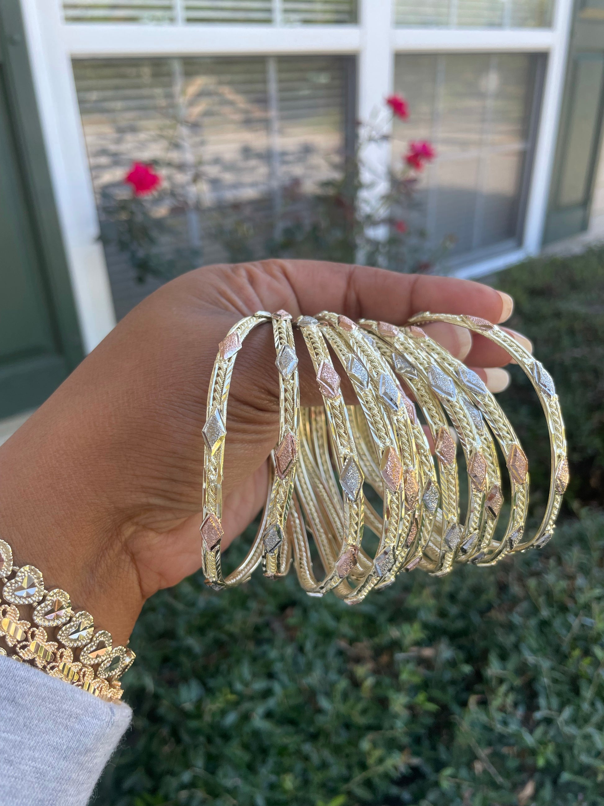 Bundle of 12 tri color bangles accented with diamonds ♦️ and they have swirl look to them