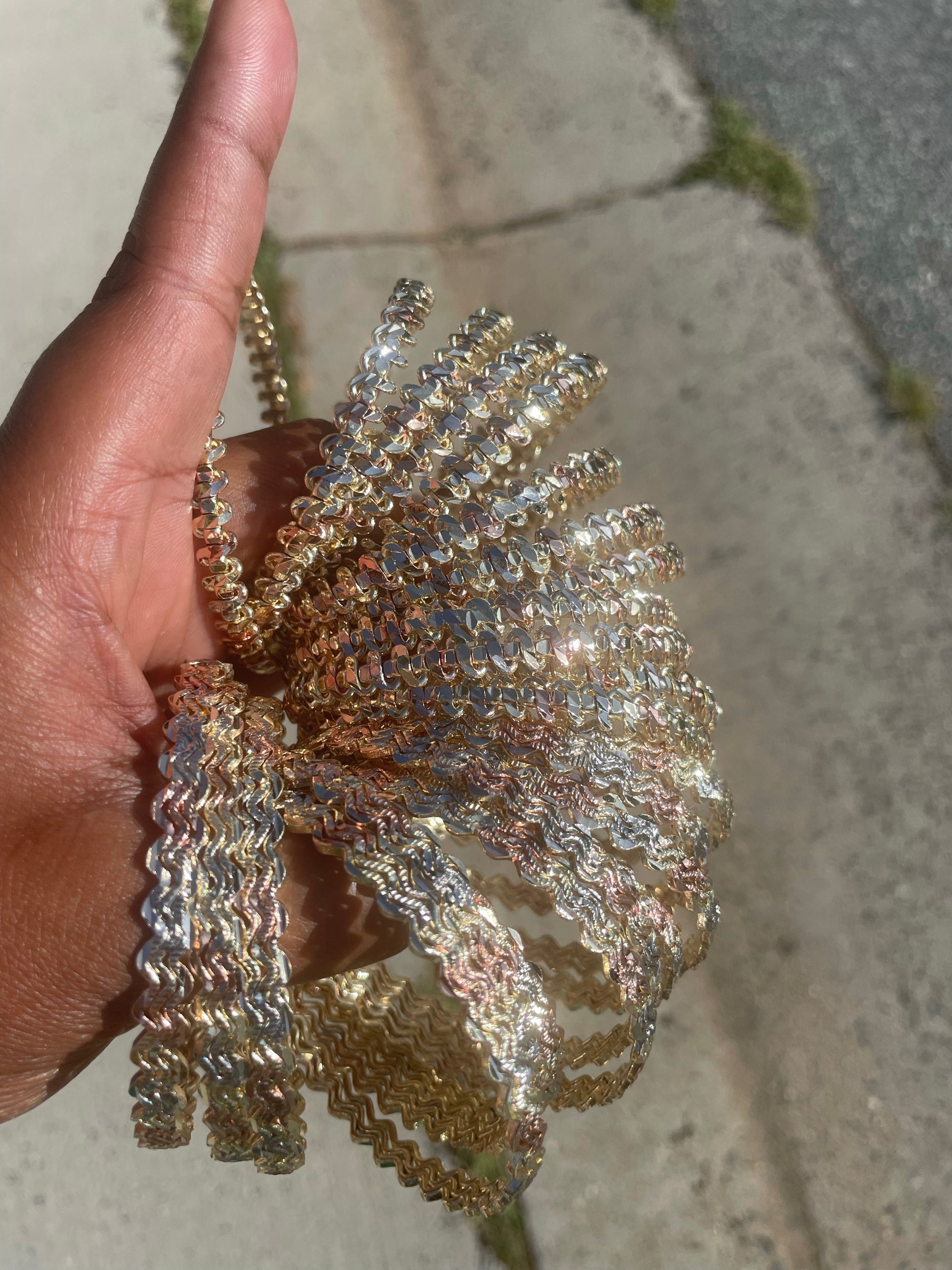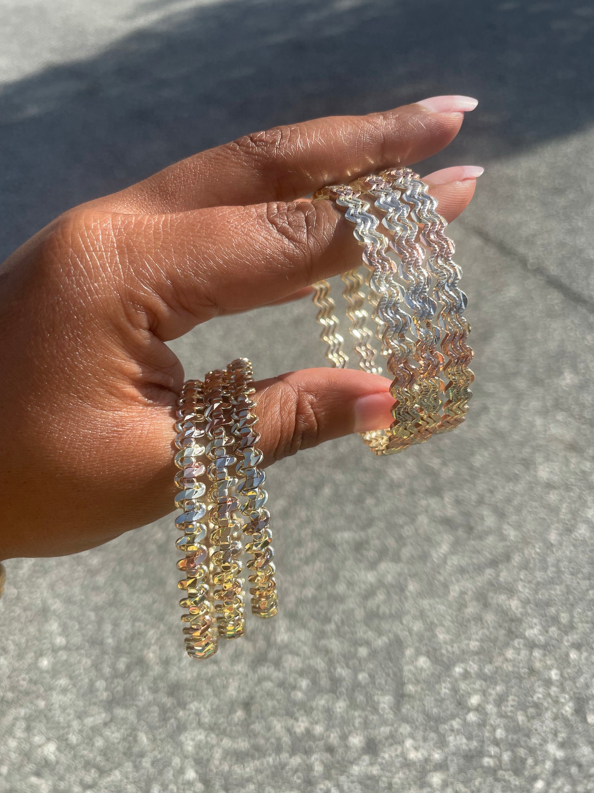 2 packs of 12 tricolor zigzag bangles which is a total of 24